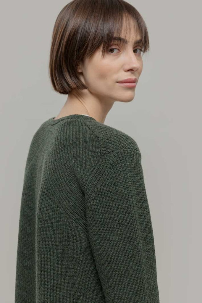Tämä pehmeä neuletakki on valmistettu kierrätetystä villasta.